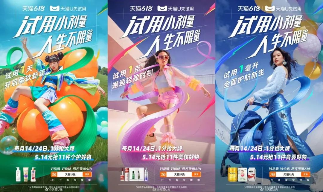 用户們感受到的簡單,其實是建立在平台和商家的不簡單之上。這本質上是供給側競爭的自然演化結果,告別無休止的拼低價內卷,大促依然需要找到更多元化的增量來源。比如天貓U先主打的“先試後買”模式,與年輕人羣體理性消費的趨勢不謀而合,多年積累中把“小樣經濟”玩出了花,也在今年的618中一夕爆發,成為品牌和商家的拉新利器。