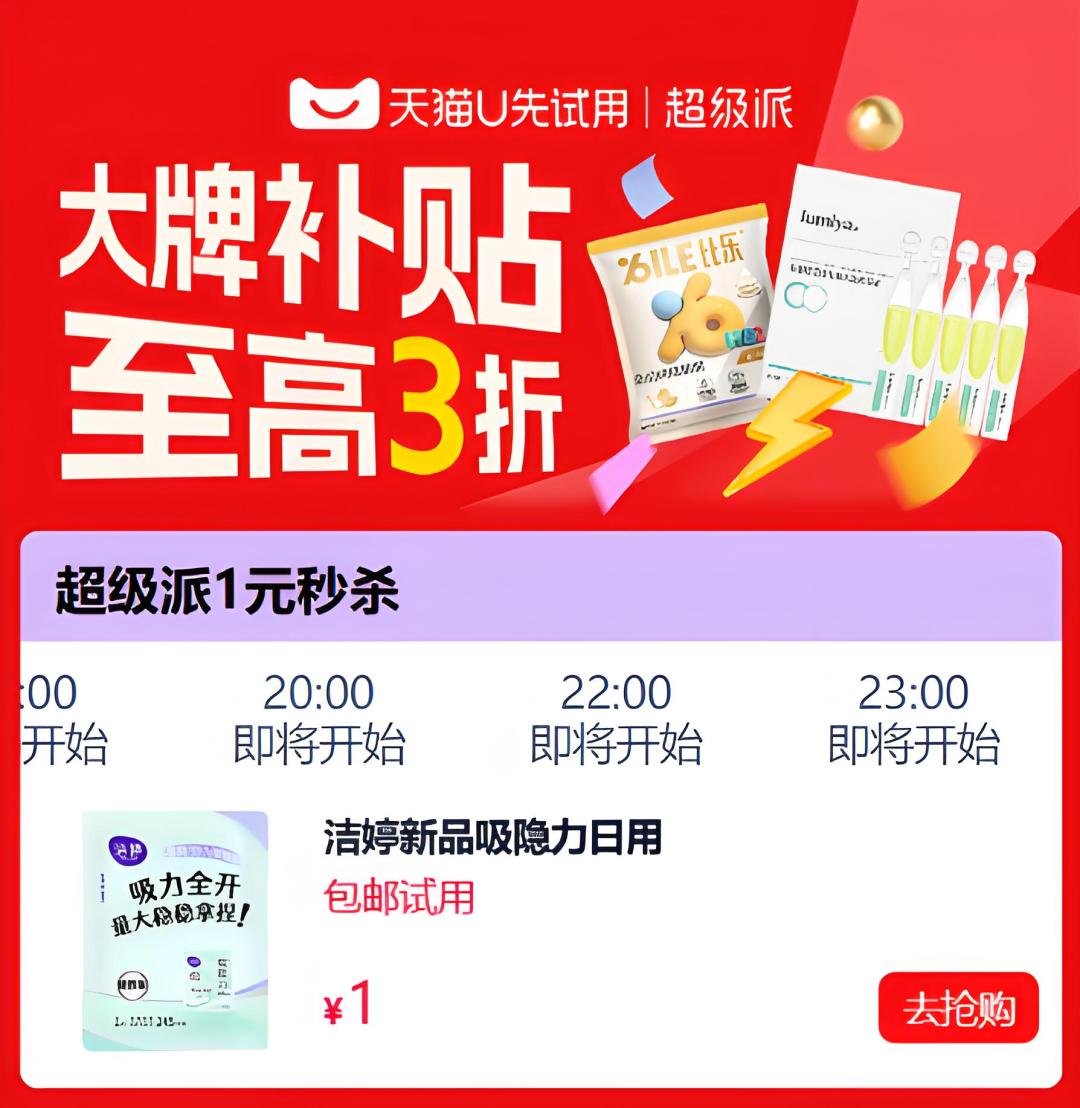 站內資源 的傾斜 , 還 體現在淘寶5 10週年慶 、 618集 貓貓贏 紅包等重大 活動 策劃中, 都 少不了派樣試用商品的 身影 。 同為 阿里系平台的定向流量精準度更高,支付寶會員頻道 的 0元兑 專區 ,針對高價值 女性 用户 與 天貓U先聯合補貼 , 進一步提升了人羣滲透效率。