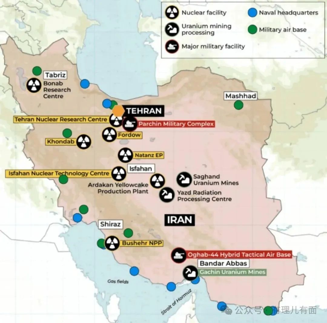 伊朗擁有25到30座完全或者主要用於核計劃的設施,其中6座屬於一級設施:納坦茲的鈾濃縮設施、伊斯法罕的轉化裝置、阿拉克的重水反應堆、帕爾欽的武器及彈藥生產設施、福爾道的鈾濃縮設施以及布什爾的輕水反應堆。這一次,美國襲擊的是其中的三個。還有一種極大的可能是,伊朗真正重要的核設施並不為人所知。