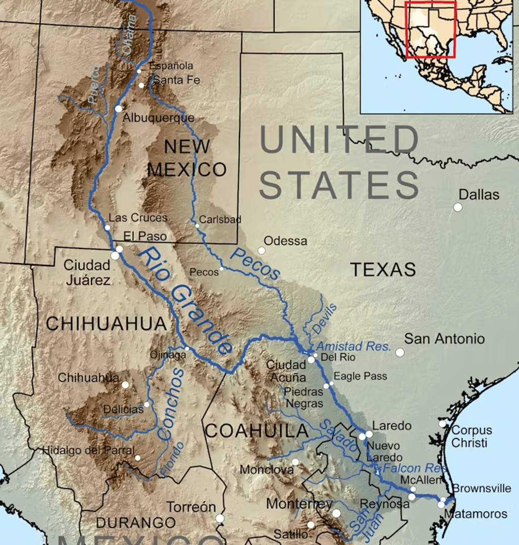 美墨邊境地區以乾旱為主,主要依賴科羅拉多河和格蘭德河等跨境水體供水,但兩者均屬全球最緊張水系。科羅拉多河服務超過4400萬人,但僅10%流量到達墨西哥,其河水常在沙漠中乾涸;格蘭德河為約1500萬人供水,形成長達2000公里的邊界線。除地表水外,至少28個跨境含水層也提供水源,已知許多被過度開採和污染。地下水日益成為主要水源,支撐農業和製造業,同時也是3000萬居民中的三分之一以上的飲用水來源。未來30年,區域人口可能翻倍,城市和工業用水將顯著上升。而氣候變化帶來雪融減少、蒸發上升及降水模式不穩定,使水資源進一步承壓 (來源:Texas A&M University)