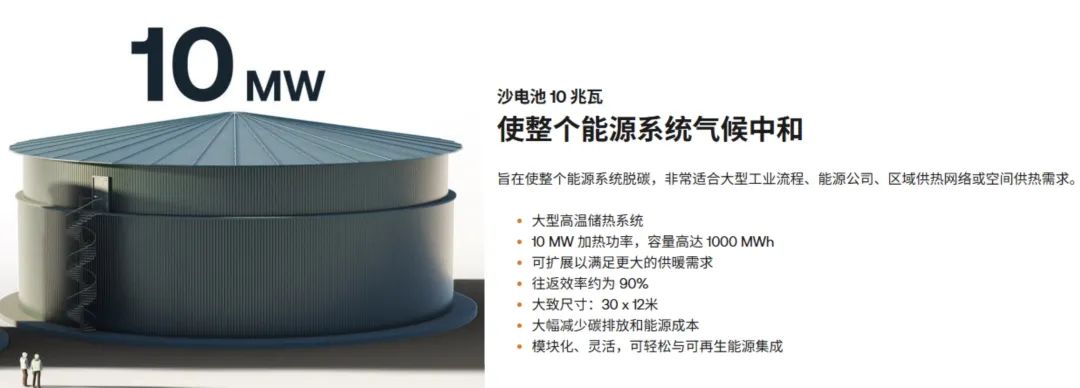 一般電池儲的是化學能,放的是電能。而沙基電池通過電力加熱電阻,電阻加熱空氣,空氣在管道里循環來加熱沙子。也就是説儲的是熱能,放的還是熱能。