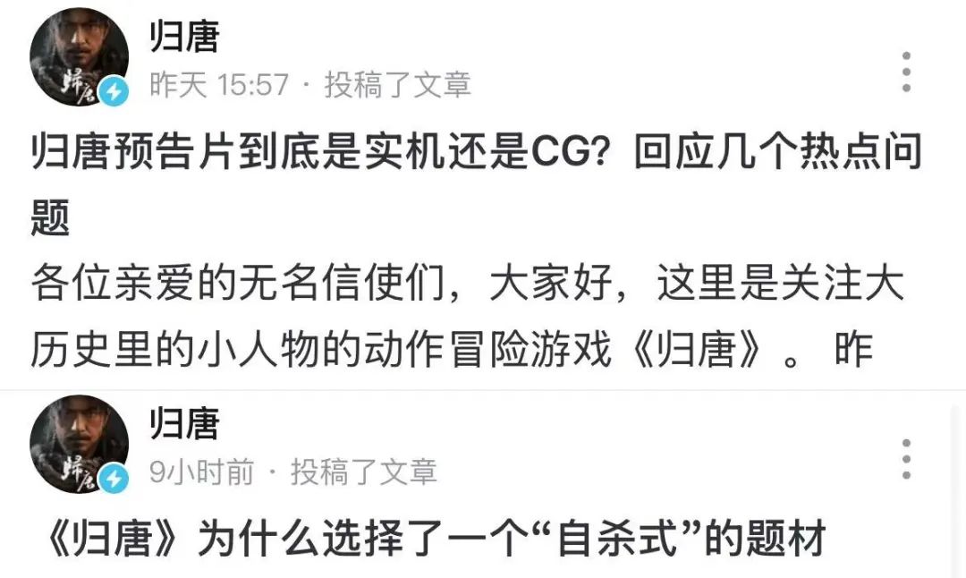 這兩天,《歸唐》官方賬號連續發文數篇,回應了玩家對預告片與產品提出的種種問題。這些回應主要集中在兩方面:一是宣傳的可信度(是不是純單機、是不是真實機),二是對題材和價值觀的解釋。