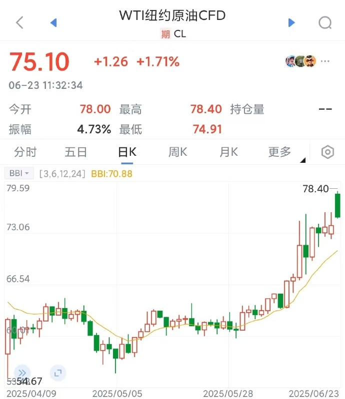 4. 可以類比的是,俄羅斯2022年2月攻擊烏克蘭,油價曾短暫漲到120以上。後來就慢慢跌到60多了,但是在整體偏高中的低位。2014年油價崩了一段,那時有較長時間的低位。如果伊朗搞大了,那油價也會暴漲,但市場預期不會維持很長時間,封鎖總會解除。