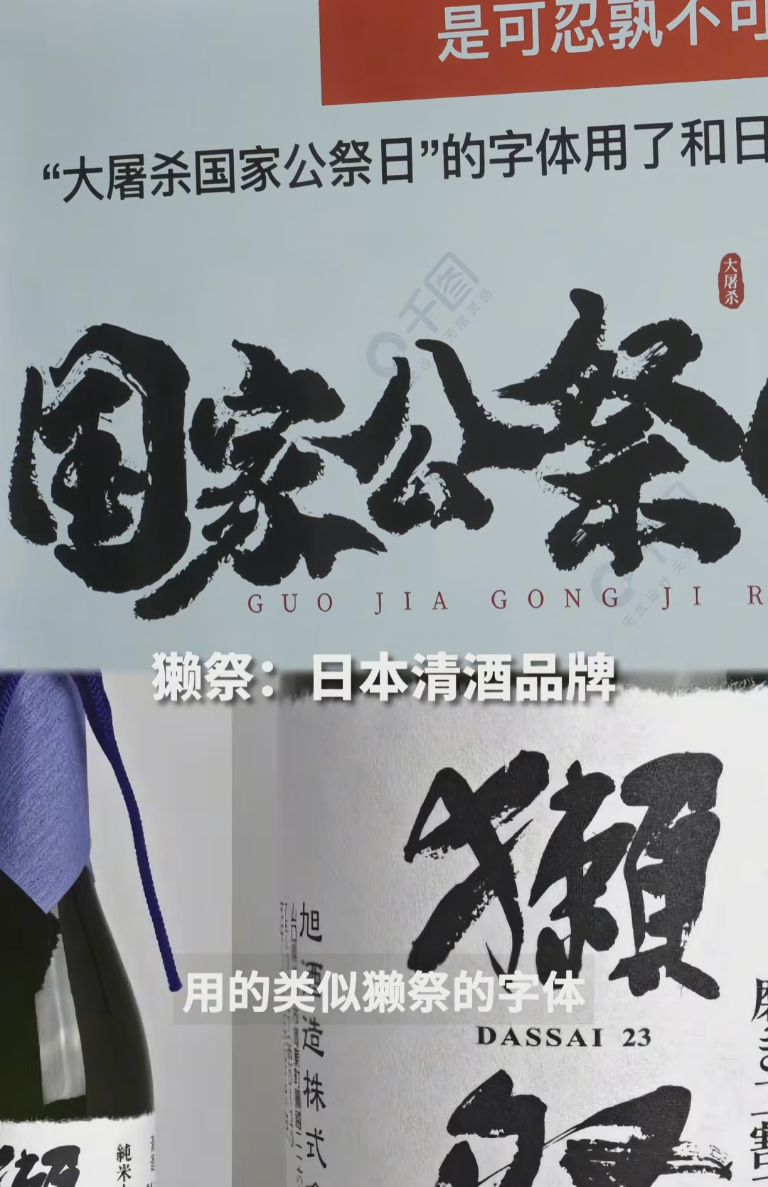 就是圖片中“大屠殺國家公祭日”,使用了類似日本獺祭的字體。
