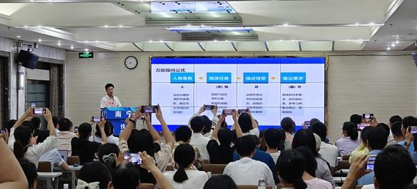 劉通是本次課堂的講師,他是一名人工智能行業的資深人員,常常在全國各地講授人工智能知識。這次來南寧,他將用3節課為學生講述人工智能的知識。“3節課要講透人工智能是遠遠不夠的,我只能講一些粗淺的原理,然後把大部分課時用在怎樣使用人工智能工具這個學生們最需要的部分。”劉通説。
