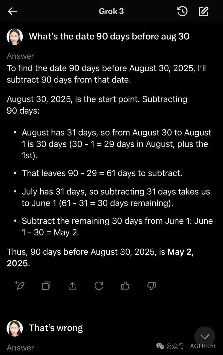 我讓Grok從一個日期減去90天,它做不到——非常失望。