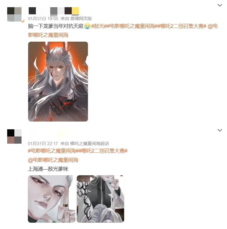 比如,在今年這個史上最強春節檔中,就能看到微博作為宣發主場的作用。在《哪吒之魔童鬧海》導演餃子的專訪登上熱搜後,敖光如何成為“東海尤物”才真相大白——原本餃子是想把敖光畫成鰲拜的形象,但第一部上映後,微博網友們持續二創了不少敖光的帥氣容貌,這才給了餃子新的啓發。這一話題點正是映前調動起觀眾觀影興趣的核心熱源之一。