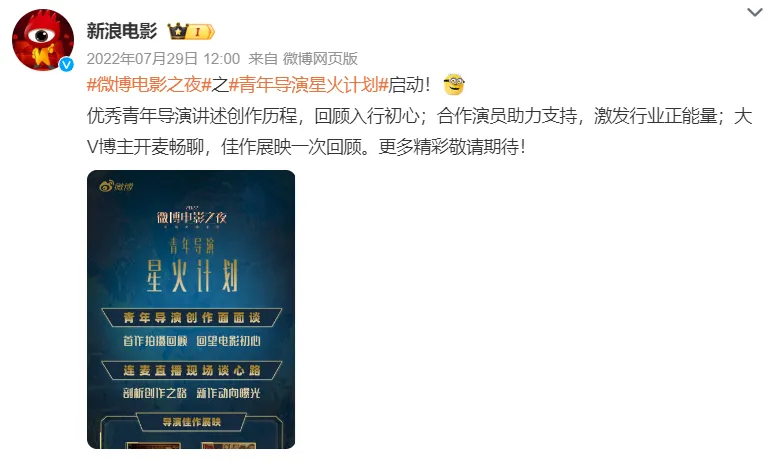 除了幫助項目,對於電影行業長遠發展更重要的,在於對人才的培養。微博作為平台型企業,也是培植育人沃土的關鍵所在。
