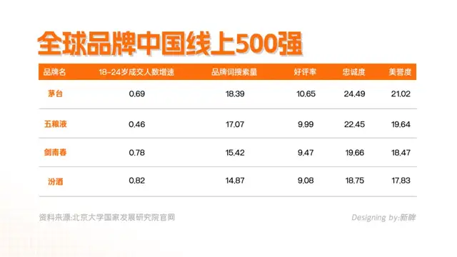 北京大學國家發展研究院官網最新發布的《全球品牌中國線上500強》(簡稱CBI500)榜單,首次用消費大數據揭示了白酒行業真相:總榜前500名中,僅8個白酒品牌入選,其中汾酒位列163名,成為除茅台、五糧液、劍南春外唯一擠進頭部陣營的傳統酒企。