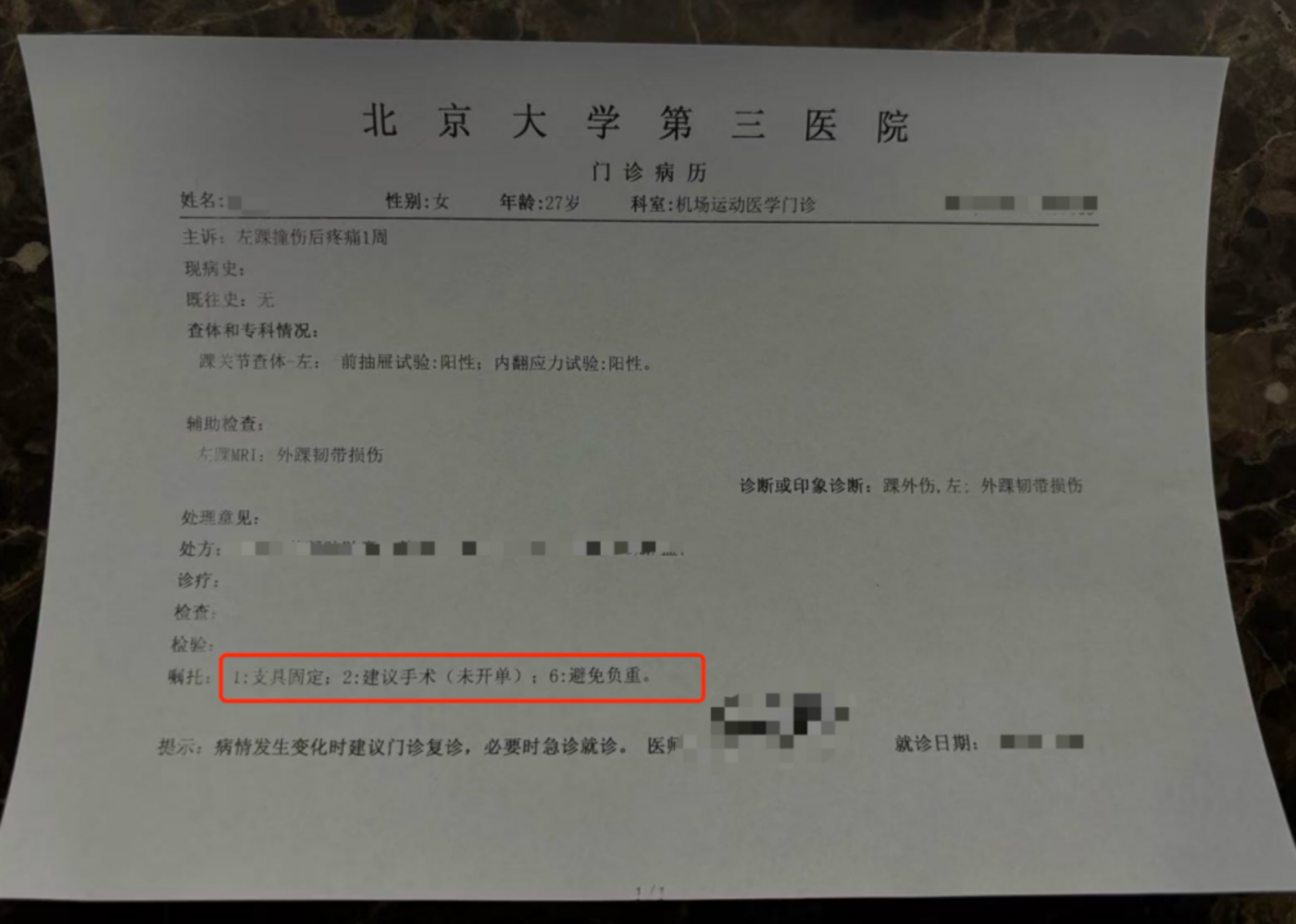 事故發生5個月後,小冰經過漫長的鑑傷、申請工傷、康復、收集車損物損維修清單發票後,最終通過保險拿到了90%的賠償,只是不在保險範圍內的支具費、交通費需要向騎手追討。就是這一千塊的賠付,小冰始終沒有等來下文,最終選擇起訴騎手。