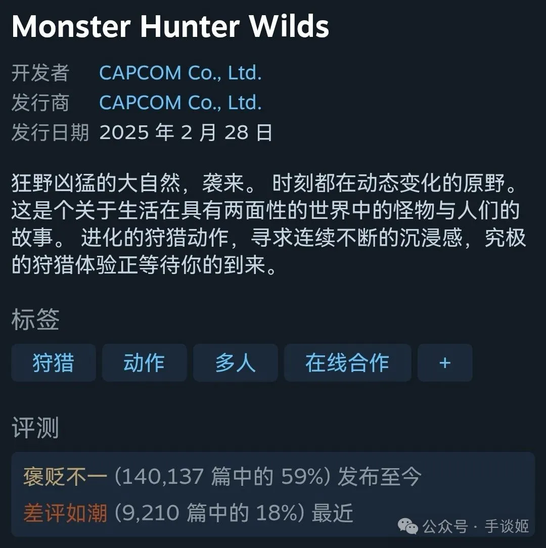 需要提前説明的是,《怪物獵人:荒野》是一款價值368元的買斷制遊戲。(姬首發買了)