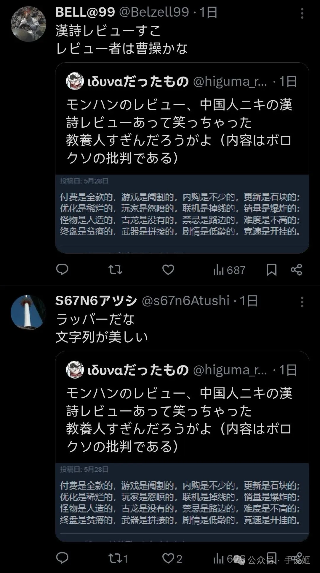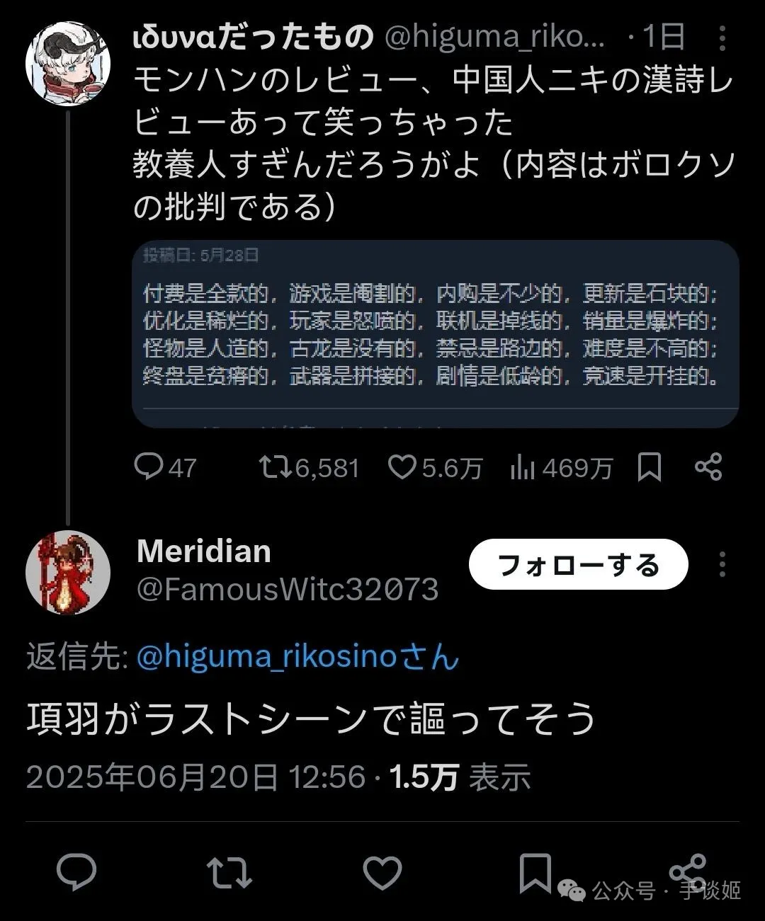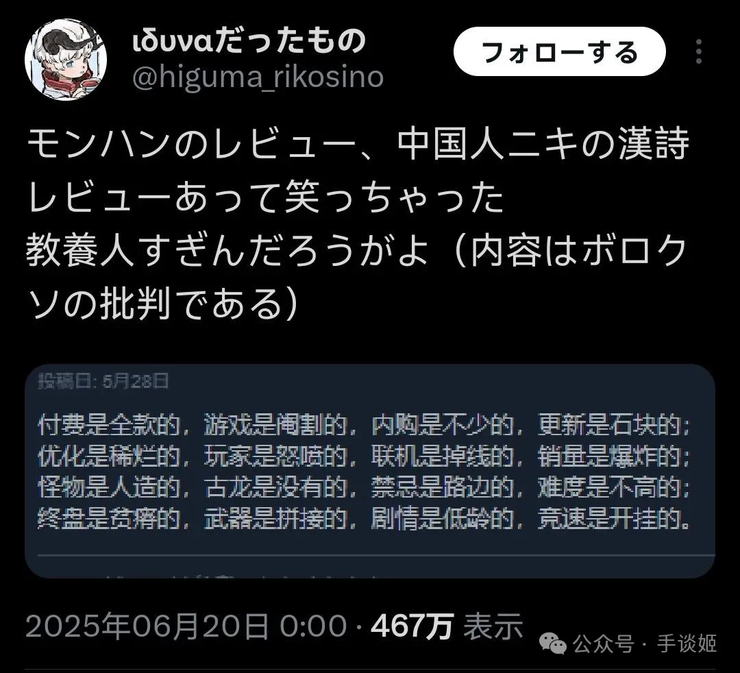 “在怪獵評論裏看到中國老哥寫的詩給我笑到了