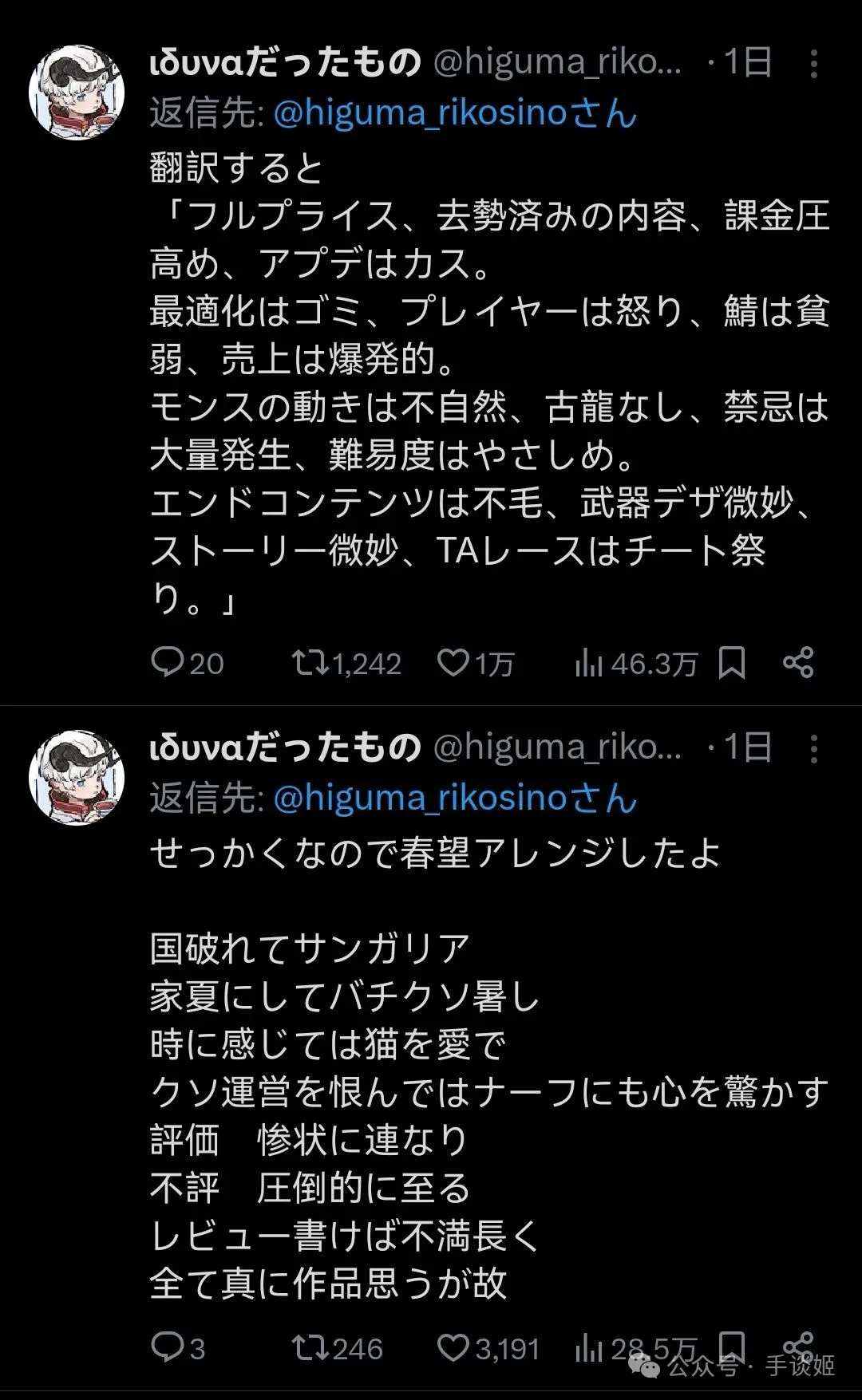 時不時就能看到各式各樣的遊戲被刷差評、被猛烈炎上,手談姬心態已經很平和了,多數都不想再寫,不過今天的想提,還得是X上刷到了有趣推文。