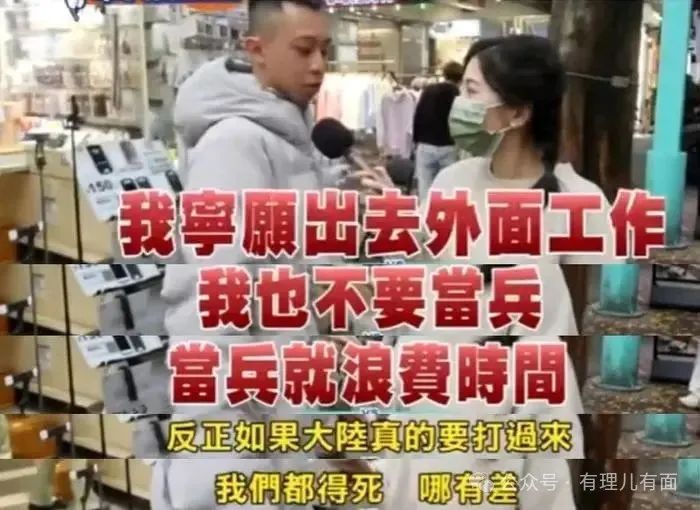 另一方面他們認為兩岸不會打仗,服兵役只會影響自己的生活。
