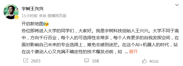 各位即將進入大學的同學們,大家好。我是宇樹科技創始人王興興。大學不同於高中,方向千行百業,每個人的可選擇性非常多,每個人有更多的自我發揮空間,在面對影響自己未來的專業選擇上,難免會感到迷茫。在這個AI+機器人的時代,站在這個激動人心又充滿不確定性的技術爆發點前,如果大家想投身具身智能行業,我結合自身的經歷給出一些小建議。