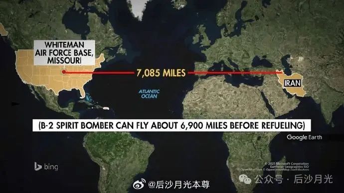 還有一種説法是,B-2直接從美國本土起飛,經過地中海,再經過約旦,伊拉克,進入伊朗境內……