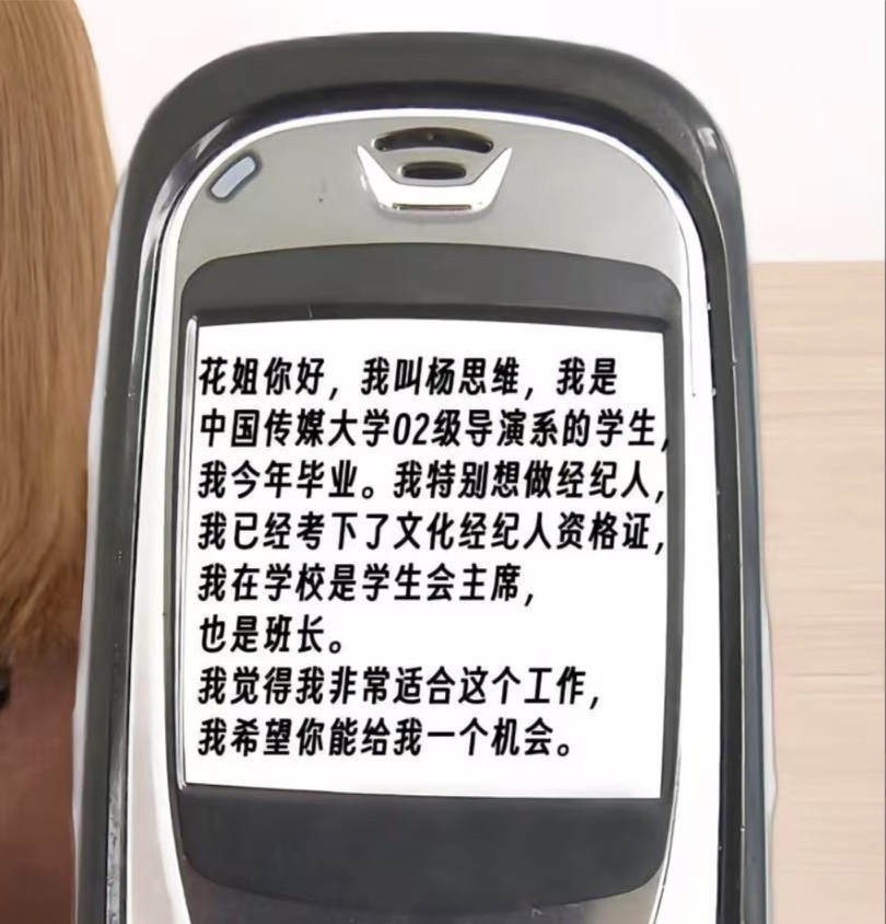 最後,她成功獲得王京花的手機號,五分鐘後,楊天真編輯發送了第一條短信。