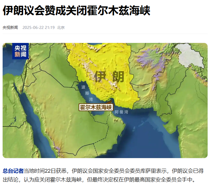 就在美國轟炸伊朗之後,伊朗議會贊成關閉霍爾木茲海峽,但最終決定權在伊朗最高國家安全委員會手中。