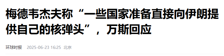 於是,我們就看到一則新聞:6月22日,前俄羅斯總統、現任國家安全委員會副主席梅德韋傑夫在社交平台X上發文説,一些國家“準備向伊朗提供自己的核彈頭”。