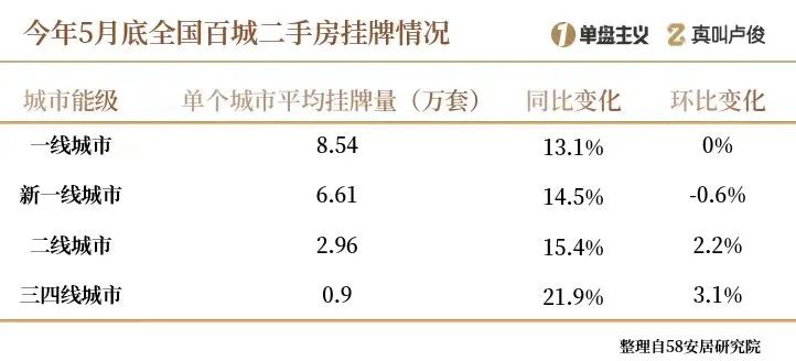 其中一線城市掛牌增加了13%,新一線14%、二線城市也有15%,三四線直接逼近22%