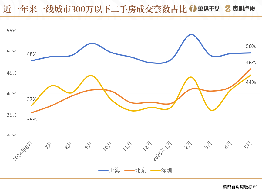 一,一線城市的二手結構,以300萬以下的低總價房源成交為主