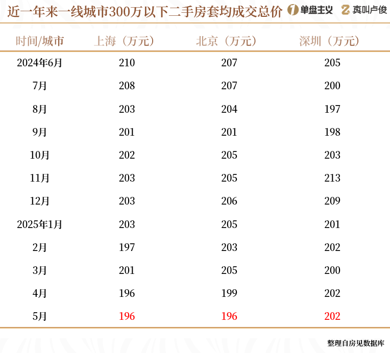 上海從210萬降到了196萬,平均每套縮水了14萬,北京和深圳也各降了11萬和3萬