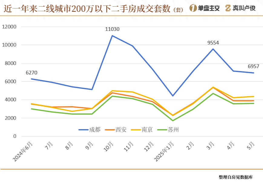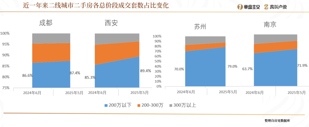比如成都、西安、蘇州還有南京,基本上200萬以下的預算,就只能考慮二手房了
