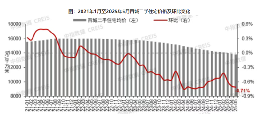 5月百城二手住宅均價僅為13794元/平,同比下跌7.24%