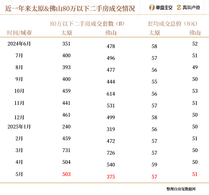 太原和佛山的套均總價已經低至50萬出頭,可謂是賣出了白菜價