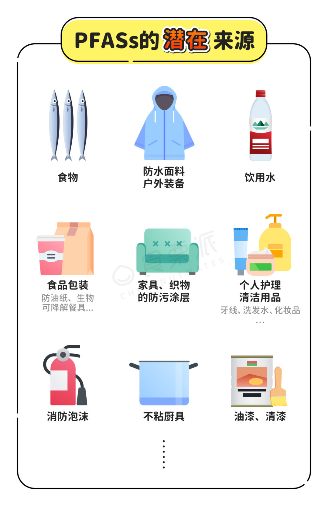 這種物質廣泛存在於不粘餐具、防污防水織物、油漆、清潔產品、食品包裝以及消防泡沫中,食品和飲用水也可能被污染。