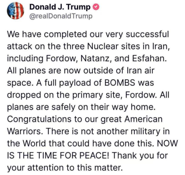 炸了,炸了,世界上最愛熱鬧的德裔特朗普先生,趕在巴巴羅薩計劃紀念日,終於把炸彈丟在了伊朗的戈壁灘上。説起來,這可是半個世紀以來,歷任美國大統領都不時宣稱要幹,而最終沒幹成的事情。**咱川皇,這就幹了。**美國人這一炸,怎麼説呢,我覺得叫皆大歡喜,真是叫炸出了新水平,新高度,新創意。