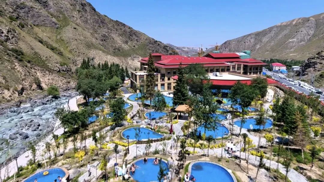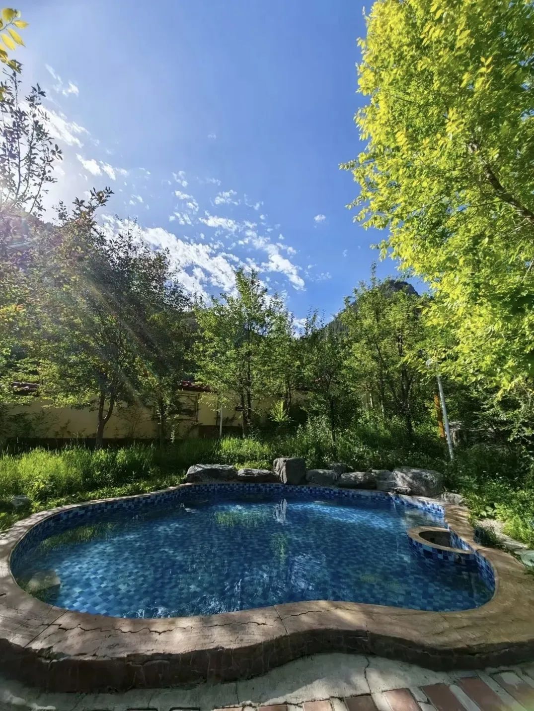 温泉景區鄰金溝河,三面環山,冬暖夏涼。它擁有七口神奇的泉眼,分別被賦予雞蛋泉、聖母泉、眼睛泉等充滿神秘色彩的名字。