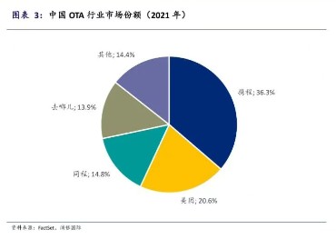 首先,攜程的行業龍頭地位依然穩固,整個酒旅市場呈現出高度集中的特徵。據Fastdata數據顯示,以2021年按市場交易額規模口徑計算,攜程佔比達到了36.3%。