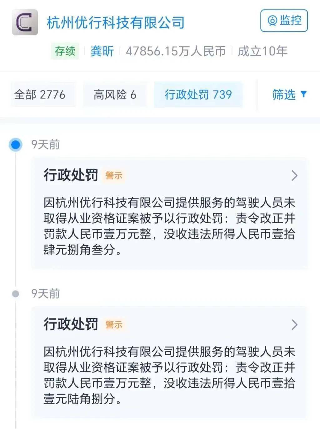 因為無證問題,曹操出行多次被監管部門約談。2024年11月,其運營主體杭州優行科技有限公司主要負責人被山東淄博相關部門約談;2024年7月,廣東汕頭多部門對其汕頭分公司進行聯合約談。天眼查App顯示,杭州優行科技有限公司共有行政處罰739條,90%以上的處罰原因是駕駛員及運營車輛未取得相關證件。這些合規問題不僅損害了曹操出行的品牌形象,也讓用户的出行安全難以得到有效保障,嚴重影響了用户體驗。