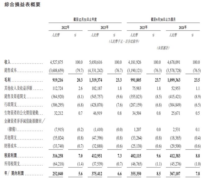 但老鄉雞存在的風險也不小,招股書顯示,2022-2024年前三季度,老鄉雞營收增速驟降至11.86%,淨利潤增速從2023年的48.8%暴跌至3.3%。而毛利率僅20.3%-23.5%,遠低於行業平均。重資產的全產業鏈模式導致成本高企,客單價卻從29.7元降至27.6元,陷入“高價被嫌、利潤難提”的悖論。
