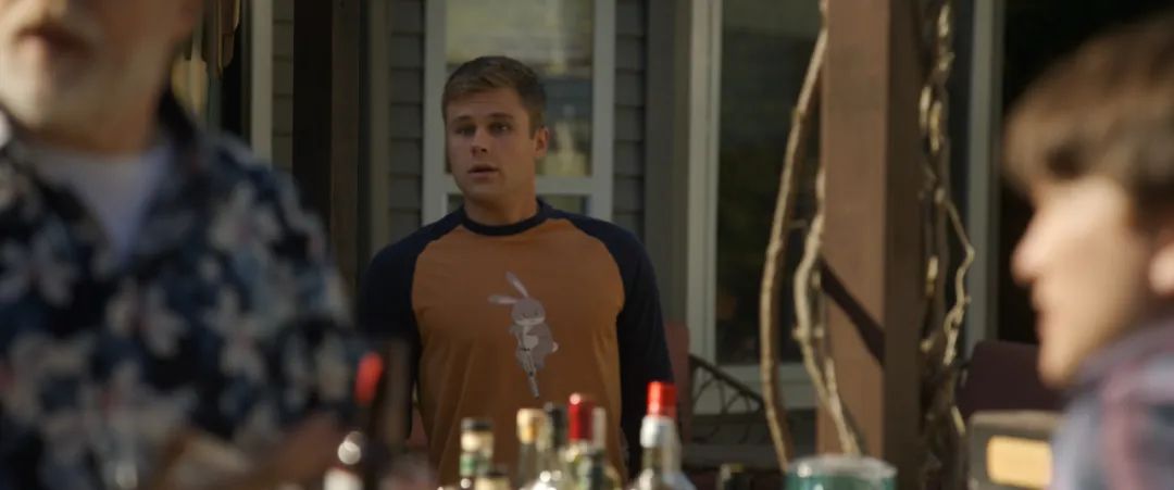 參加家庭聚會時,波比T恤上印着一隻騎着彈簧跳跳機的兔子。
