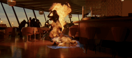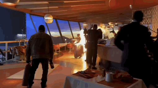 值得一提的是,這位被點燃的顧客由已經退休的特技演員伊維特·弗格森(Yvette Ferguson)飾演。