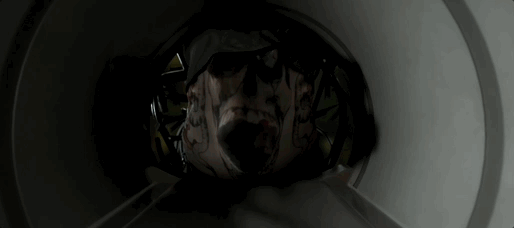 這句英文字面意思其實是“你把我撕開了”,對應的是接待員最後的死法是被墜落的電梯撕成碎片。