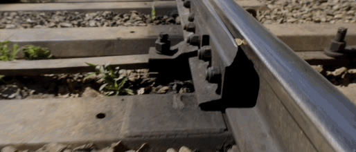 那枚硬幣再次滾落,正好卡在鐵軌中間。