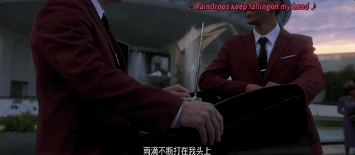 樓下的收音機裏播放的是B·J·托馬斯的歌曲:“雨滴不斷打在我頭上”《Raindrops keep falling on my head》。