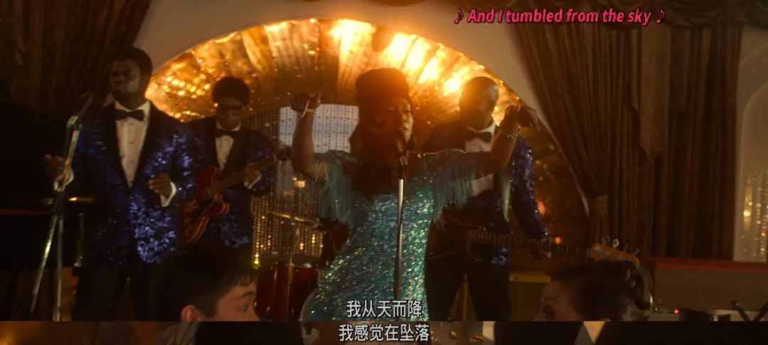 此時黑人女歌手在台上唱起了康妮·法蘭西斯的歌曲《Fallin》,歌詞對即將發生的災難,已經不是暗示,而是明示: