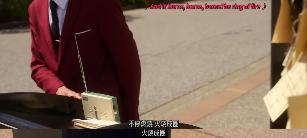 天景的接待當時聽的歌曲,是鄉村歌手約翰·卡什1968年創作的名曲《火環》(Ring of Fire)。