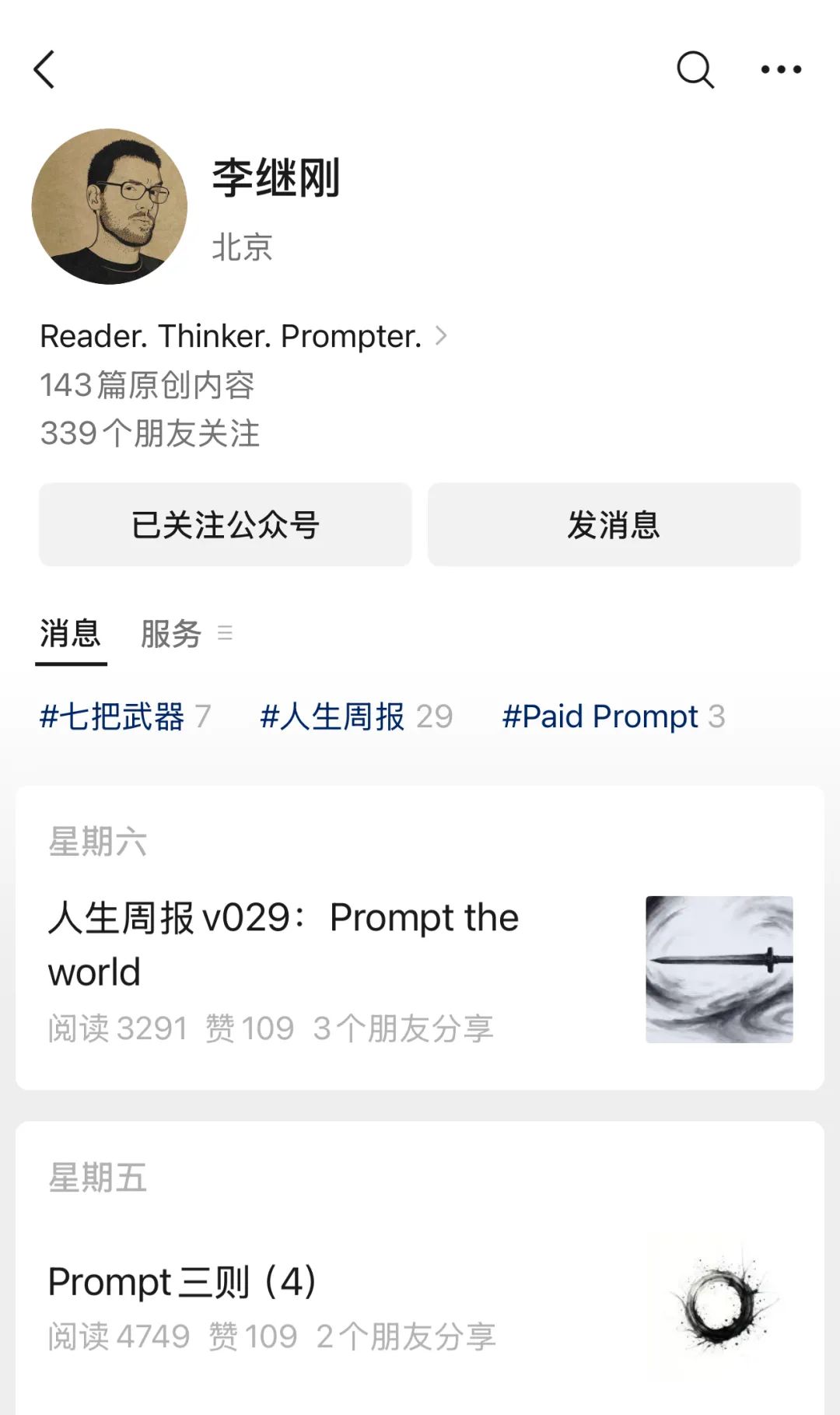 作為提示詞大咖,繼剛老師的公眾號去年9月才註冊,開始還叫“Write Prompt”。
