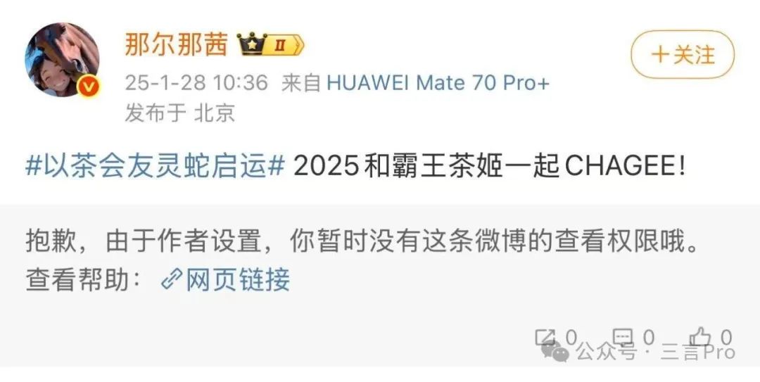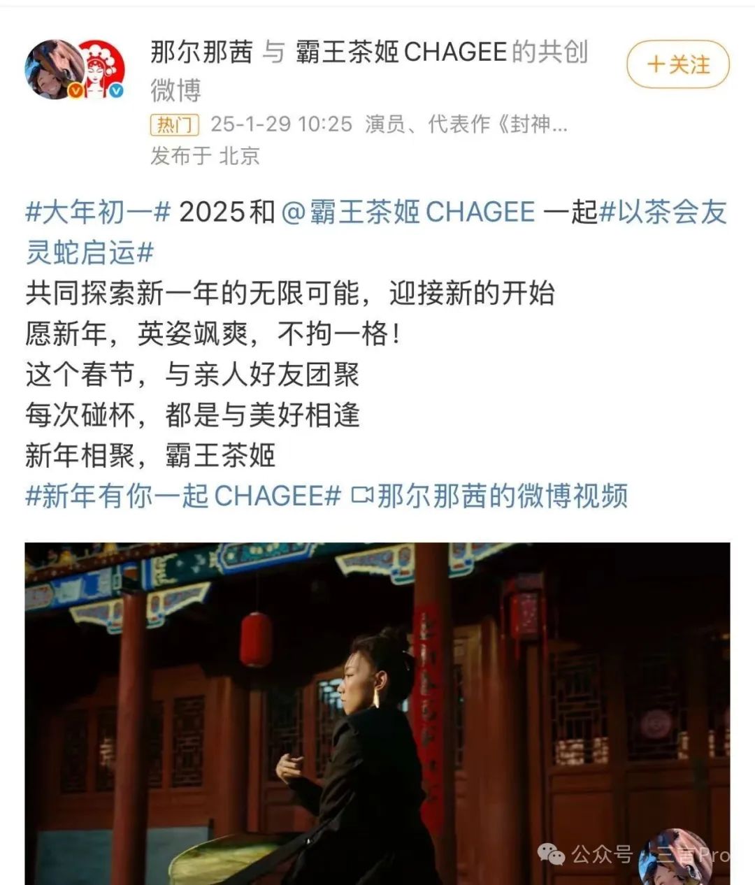那爾那茜此前成為霸王茶姬品牌摯友,並共創微博,霸王茶姬官微已經搜不到那爾那茜了。這不太像"摯友",像普通朋友。