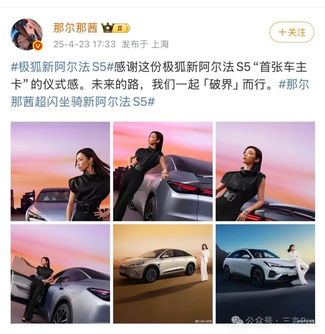那爾那茜還擔任了極狐汽車品牌大使,併發布多條極狐汽車的相關微博。