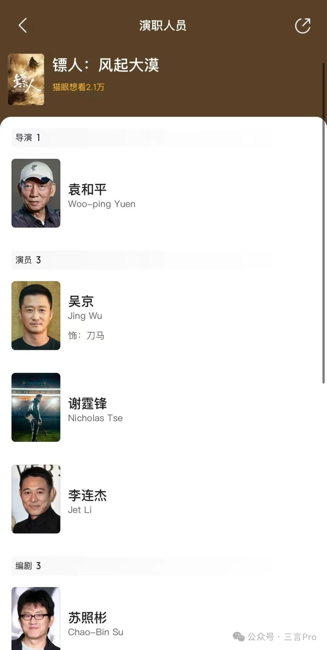 此外,網傳那爾那茜已從電影《鏢人:風起大漠》主演名單上消失。