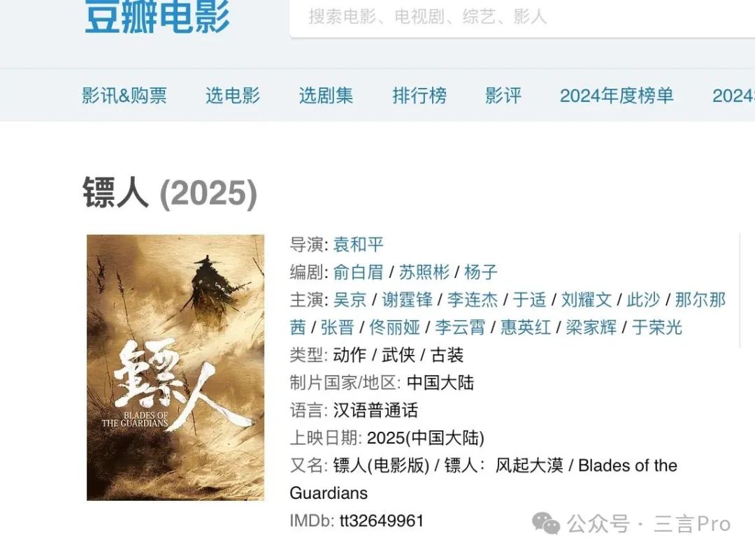 電影《鏢人:風起大漠》回應那爾那茜從名單消失