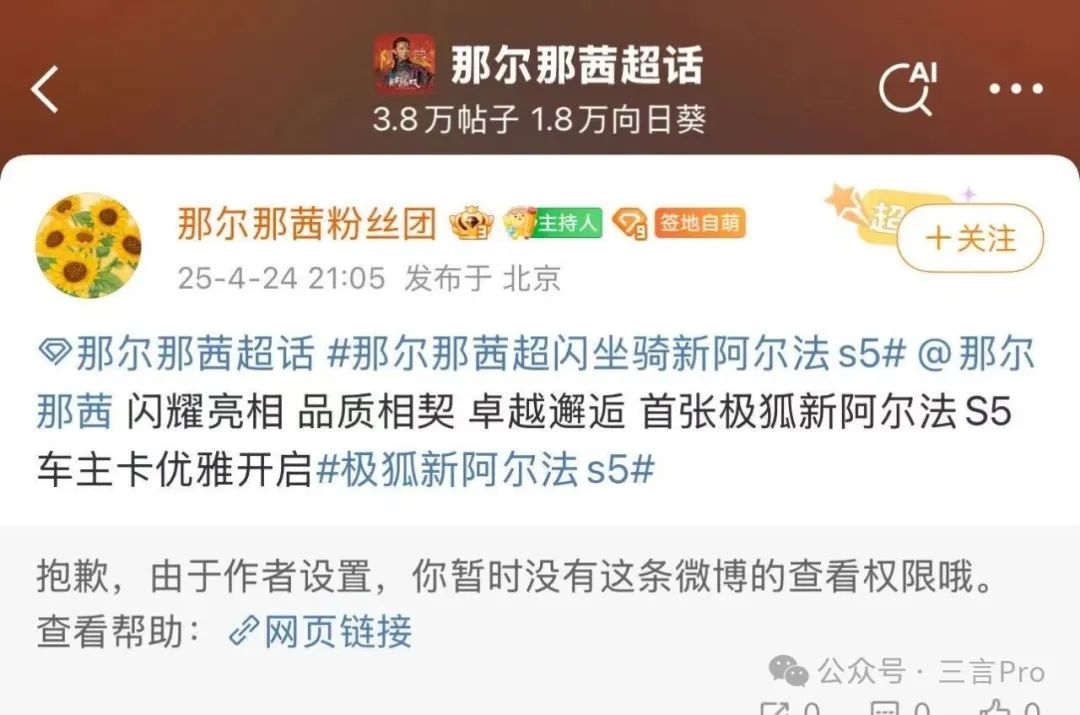 目前,極狐汽車官微已經搜不到"那爾那茜"。