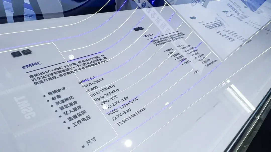 在展會現場,王天益重點介紹了嵌入式存儲全流程研發測試體系,基於對存儲介質特性與移動通信場景市場需求的深度理解,通過優化硬件設計及封裝工藝、強化多平台兼容性測試等措施,提升設備運行穩定性。