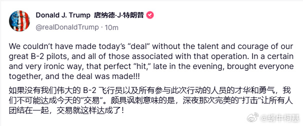 笑死,半小時前特朗普還在開心發圖,以為自己掌控了全世界